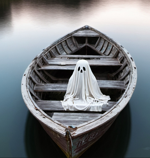 Fra marken selv, mellom de to stedene, svevde en hvit skikkelse frem – ikke gående, ikke løpende, men svevende, som tåke som tar form. Hun var lang og blek, kledd i et laken eller en nattkjole som flagret i en vind ingen andre kjente, ansiktet skjult i skygger, men øynene... øynene glødet svakt, som månen reflektert i et speil. Jentene stoppet brått, stirret. Skikkelsen stirret tilbake – et øyeblikk av stillhet, som om verden holdt pusten. Så snudde de seg og løp. Hjerter hamrende, skjørt flaksende, mot det nærmeste huset i nærheten. Bak dem, et sus – som vinger, som et pust – og skikkelsen fulgte, svevende over marken uten å røre jorden, nærmere og nærmere.